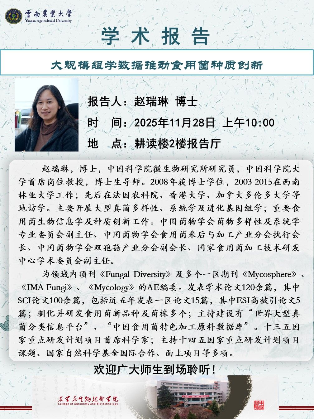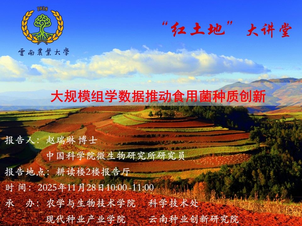 11月28日“紅土地”大講堂:大規(guī)模組學數(shù)據(jù)推動食用菌種質(zhì)創(chuàng)新