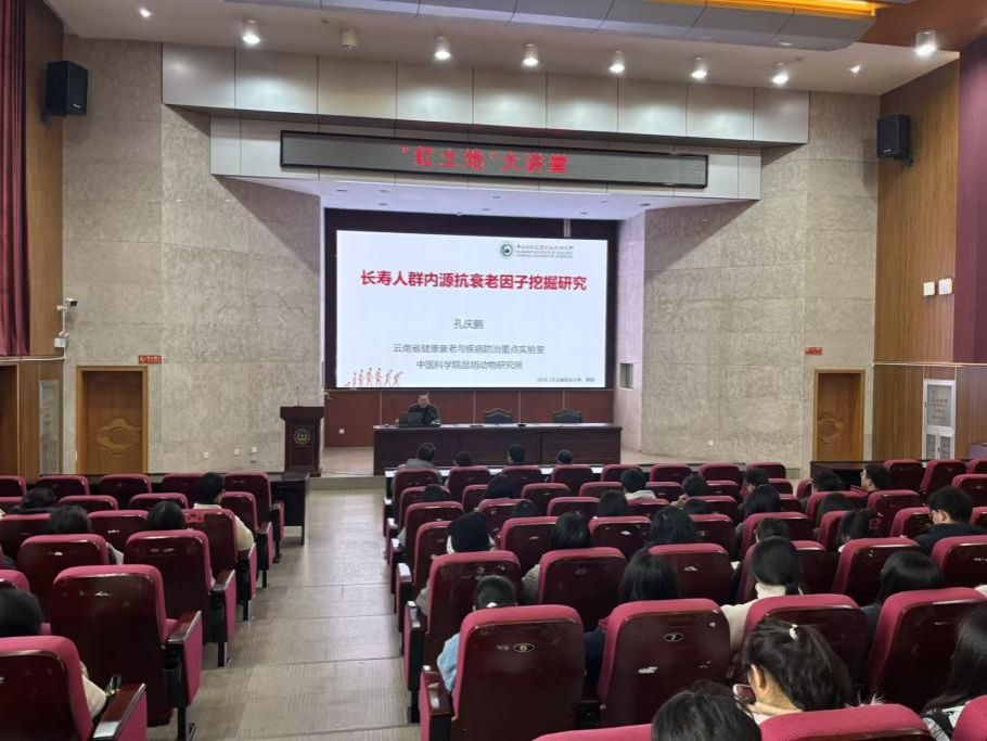 活動(dòng)伊始,食品科學(xué)技術(shù)學(xué)院副院長(zhǎng)方崇業(yè)教授致辭,對(duì)孔慶鵬研究員的到來表示熱烈歡迎。孔慶鵬研究員以“長(zhǎng)壽人群內(nèi)源抗衰老因子挖掘研究”為題,系統(tǒng)闡述了抗衰老研究領(lǐng)域面臨的傳統(tǒng)思路局限與現(xiàn)實(shí)挑戰(zhàn),并重點(diǎn)介紹了如何從長(zhǎng)壽人群中挖掘內(nèi)源性抗衰老因子。