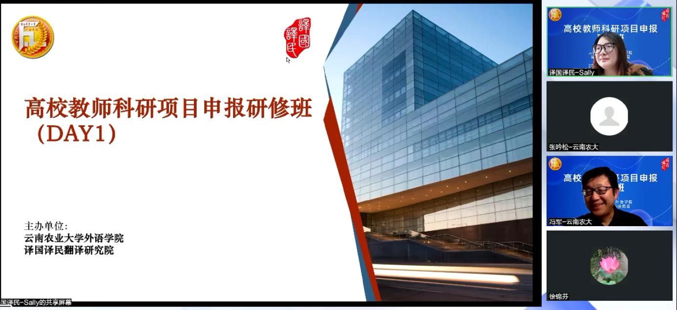 本站消息 1月24日至25日,外語學(xué)院與譯國(guó)譯民翻譯研究院聯(lián)合在線舉辦科研項(xiàng)目申報(bào)研修班,外語學(xué)院院長(zhǎng)張吟松出席開班式并致辭,其余學(xué)院領(lǐng)導(dǎo)分別主持專題講座,學(xué)院全體教師參加培訓(xùn)。