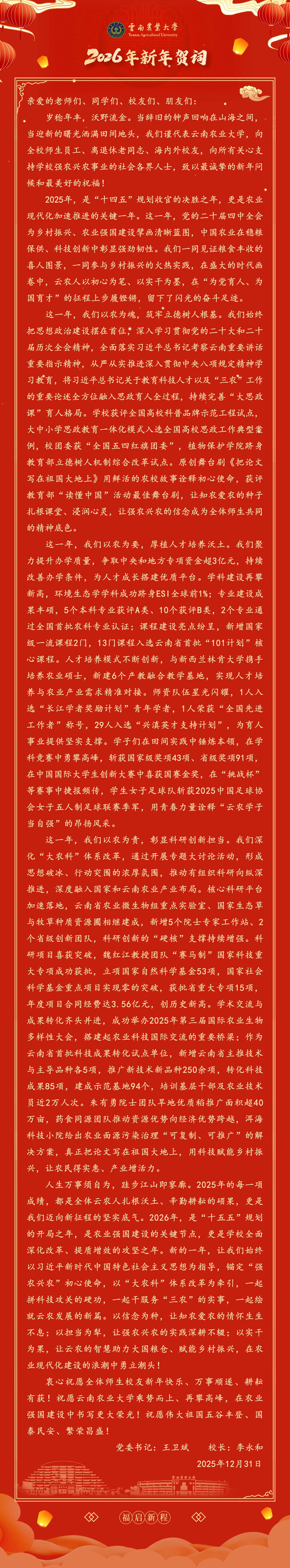 云南農(nóng)業(yè)大學(xué)2026年新年賀詞