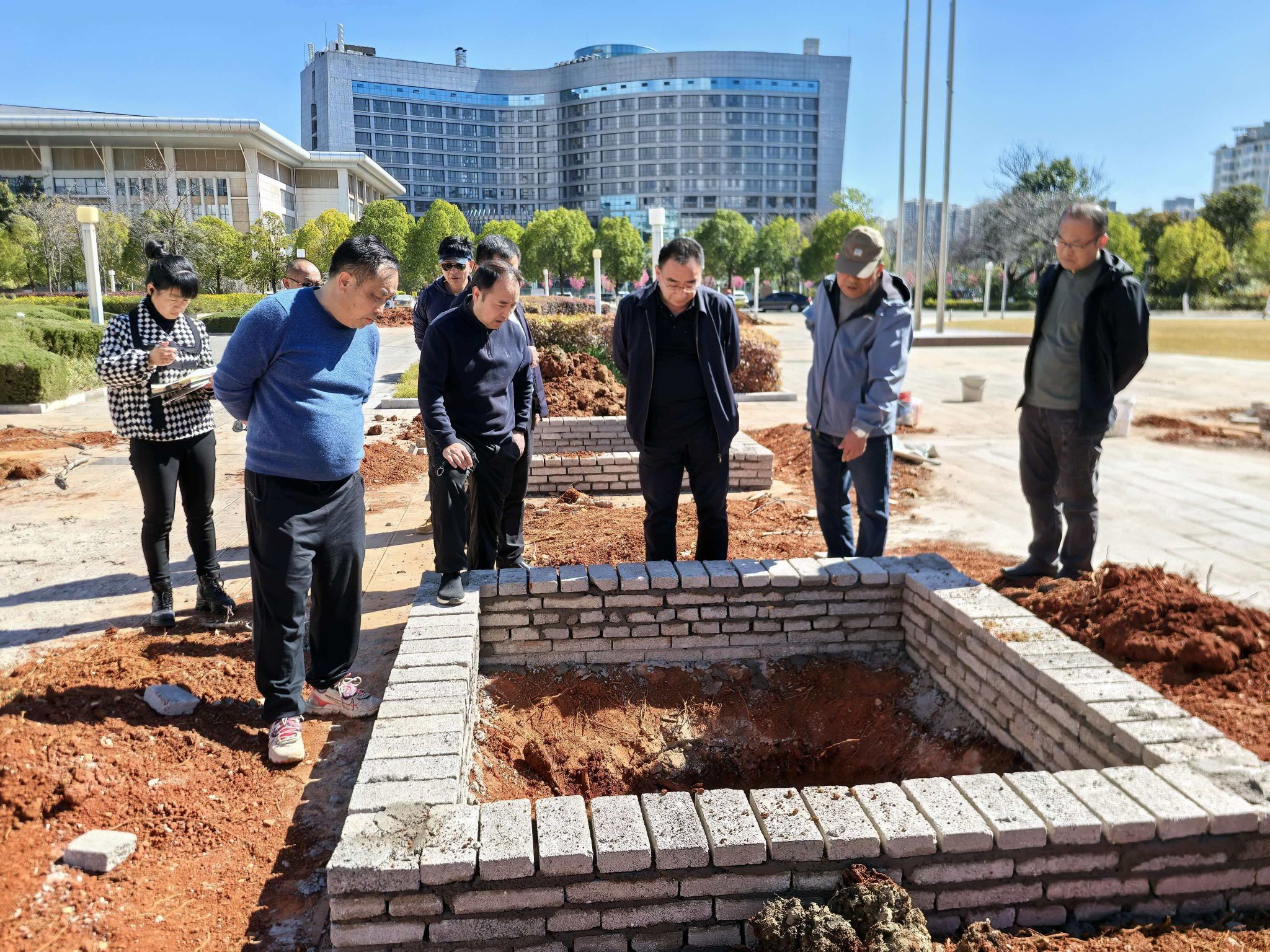 王衛(wèi)斌一行沿著施工區(qū)域逐步查看,詳細(xì)詢問當(dāng)前施工進(jìn)度、苗木籌備、安全保障等情況,重點(diǎn)關(guān)注綠植栽種細(xì)節(jié),針對現(xiàn)場施工中的關(guān)鍵問題逐一提出專業(yè)指導(dǎo)建議和要求。王衛(wèi)斌著重強(qiáng)調(diào),施工班組要嚴(yán)格遵守安全施工各項(xiàng)規(guī)范,強(qiáng)化現(xiàn)場安全管理,全面排查施工過程中的各類安全隱患,切實(shí)筑牢假期施工安全防線,確保項(xiàng)目高質(zhì)量、高效率推進(jìn);項(xiàng)目各參建方要統(tǒng)籌加緊施工,搶抓苗木栽植時令,確保移栽和新植苗木的成活率。同時,王衛(wèi)斌還代表學(xué)校向春節(jié)臨近還在辛勤工作的施工方、監(jiān)理方和學(xué)校現(xiàn)場代表表示親切的慰問。